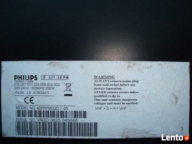 Do wzięcia jest kompletny telewizor na oryginalnej podstawie z kablem prądowym,z kablem połączeniowym i pilot PHILIPS.