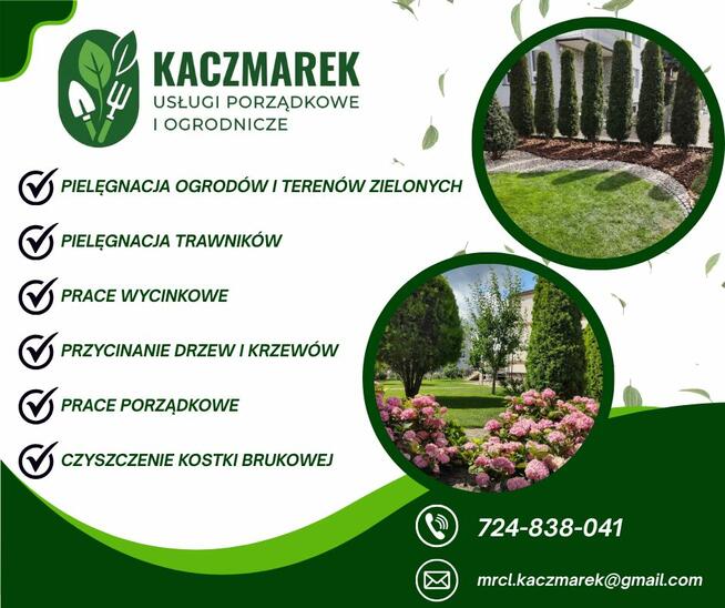 Kaczmarek Usługi Porządkowe i Ogrodnicze to firma która uporządkuje oraz zadba o ogród lub teren wokół Twojej firmy. ...